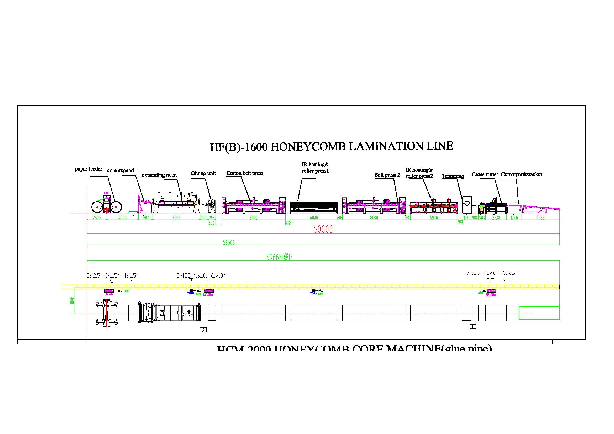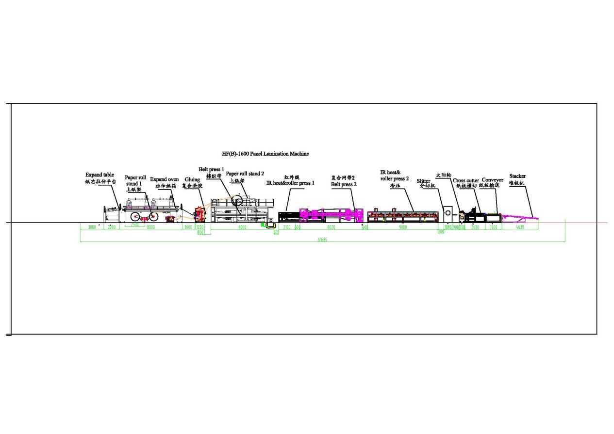 HF(B) series lamination line is used to expand and laminate the honeycomb paper core from the HCM to form the honeycomb paperboards. It apply glue on honeycomb core or face paper at same time , top and bottom paper lamination with honeycomb core together.